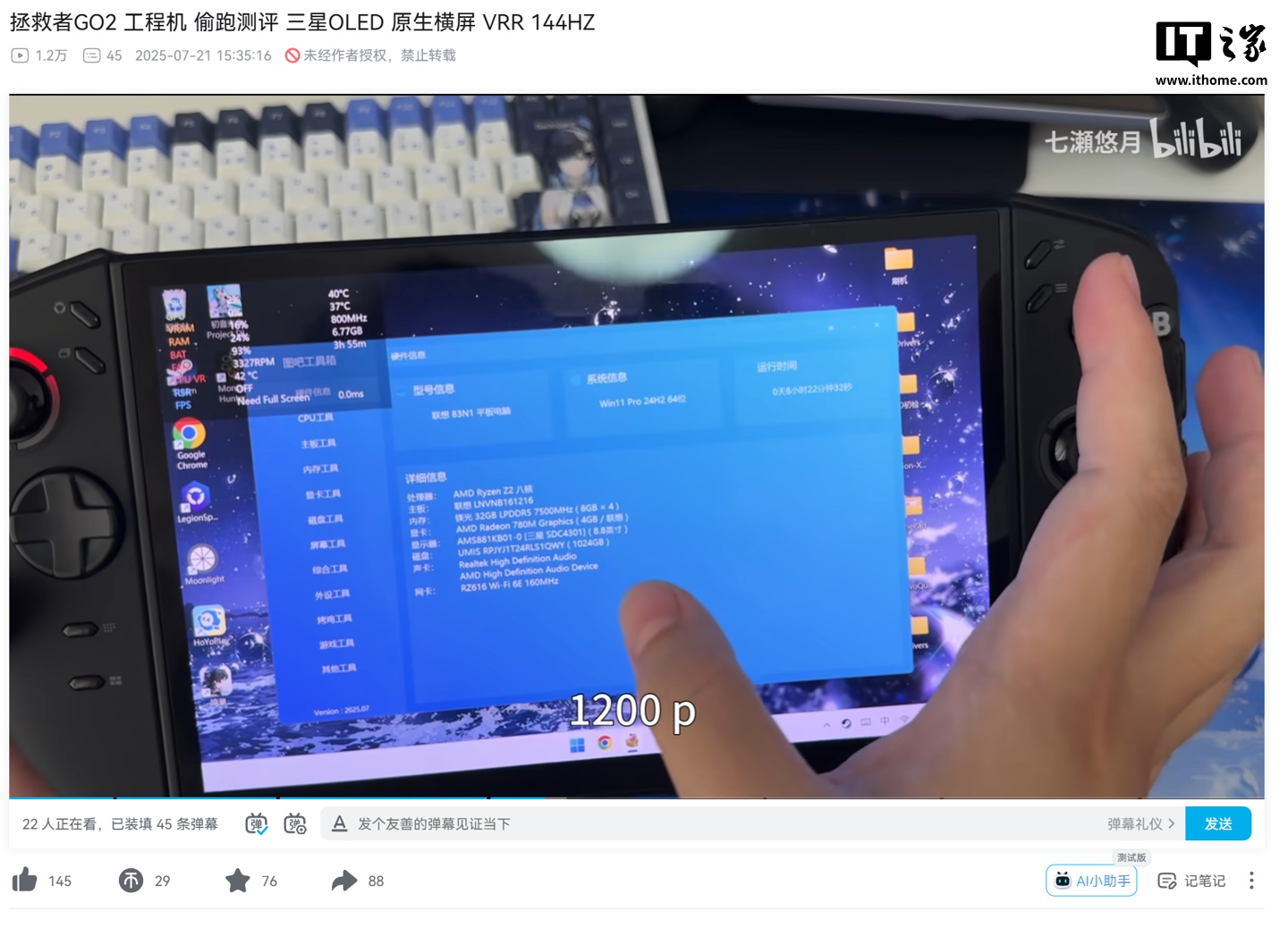 据博主介绍,这台掌机购于闲鱼,生产日期为 2024 年 11 月 25 日,与联想在 CES 2025 展出的样机配置基本上相同,均搭载了锐龙 Z2 处理器。