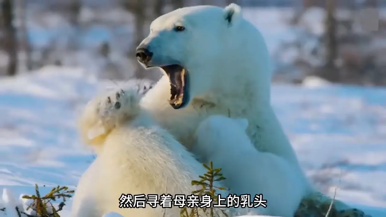 在冰天雪地中,熊妈和它的孩子相依为伴,作为独居动物,雌性北极熊唯有育幼的时候才会过着群居的生活,幼熊需要母亲养育至两年,它才能独立生存。